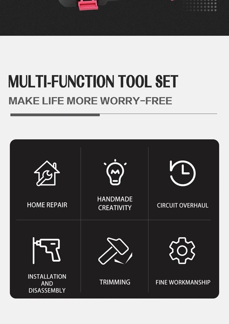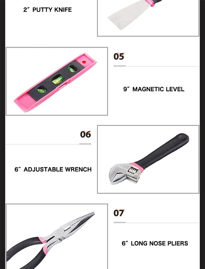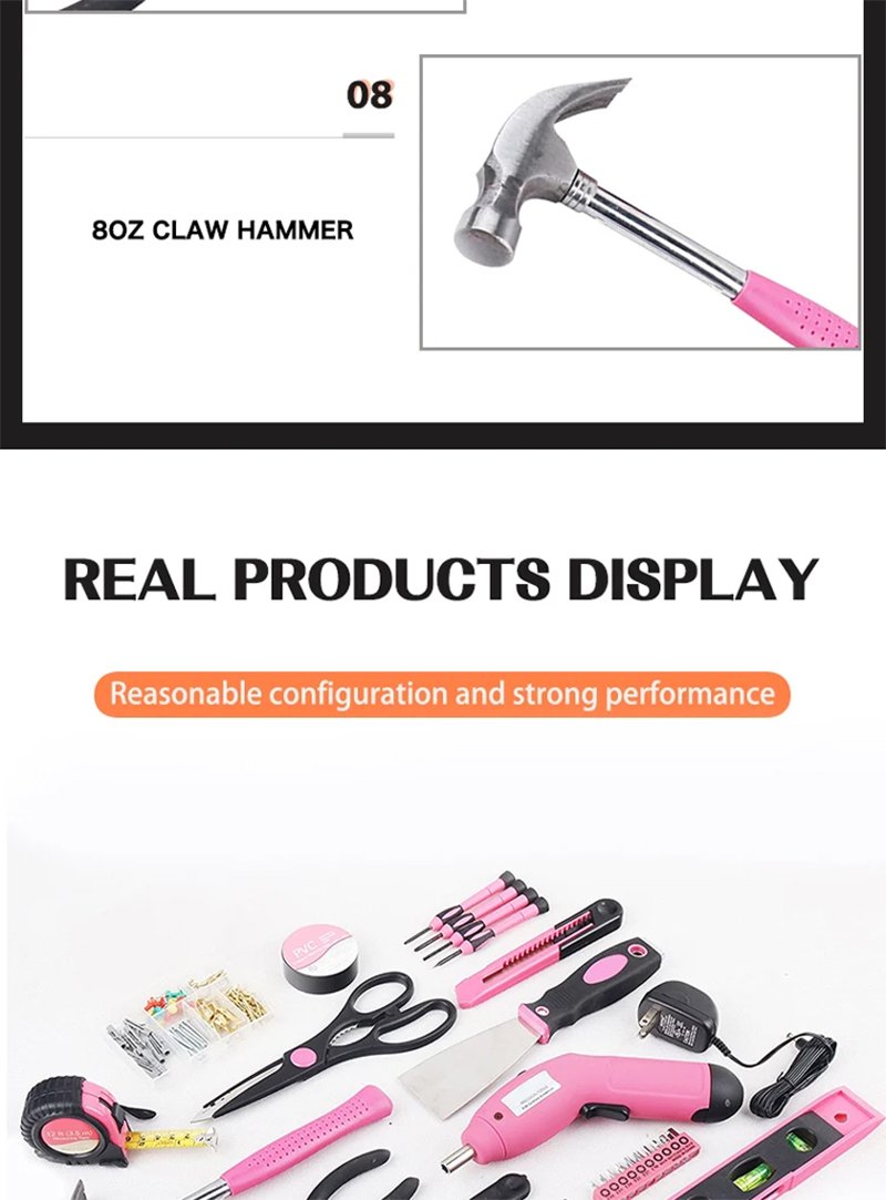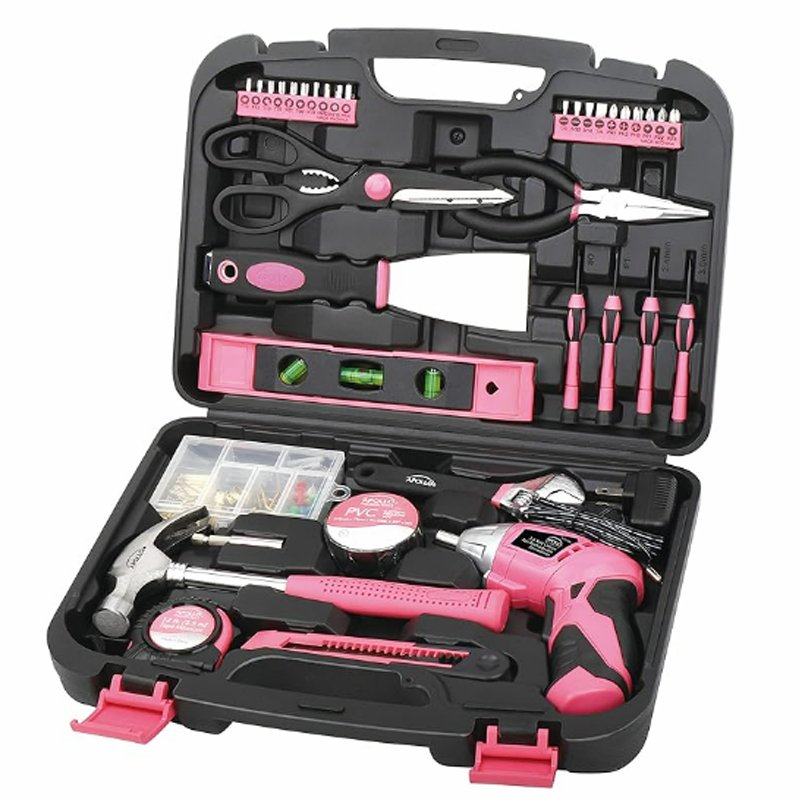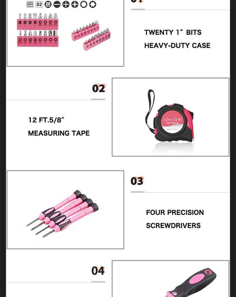 1 กล่อง = 4 ชิ้น ชุดเครื่องมือในครัวเรือน 135 ชิ้น สีชมพู พร้อมไขควงไร้สายลิเธียมไออน 3.6 โวลต์ แบบปรับหมุนได้ 2 มุม