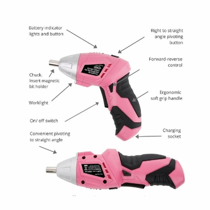 - Upgraded 3.6 Volt Lithium-Ion Rechargeable Screwdriver With Angle Adjustment Features Easy Forward/Reverse Mechanism, A Bright Led To Light Up Work Areas. A Power Gauge Lets You Know When It’S Time To Recharge, And The Head Rotates From Straight To Right Angle