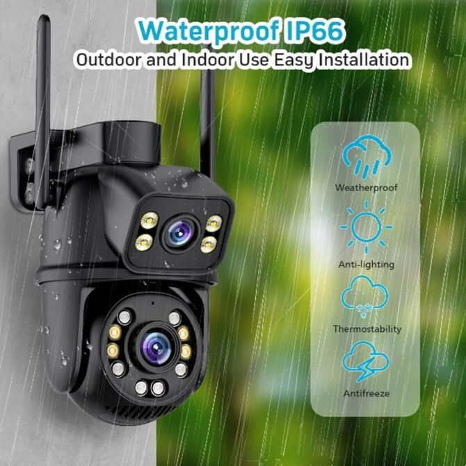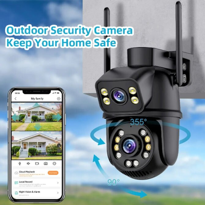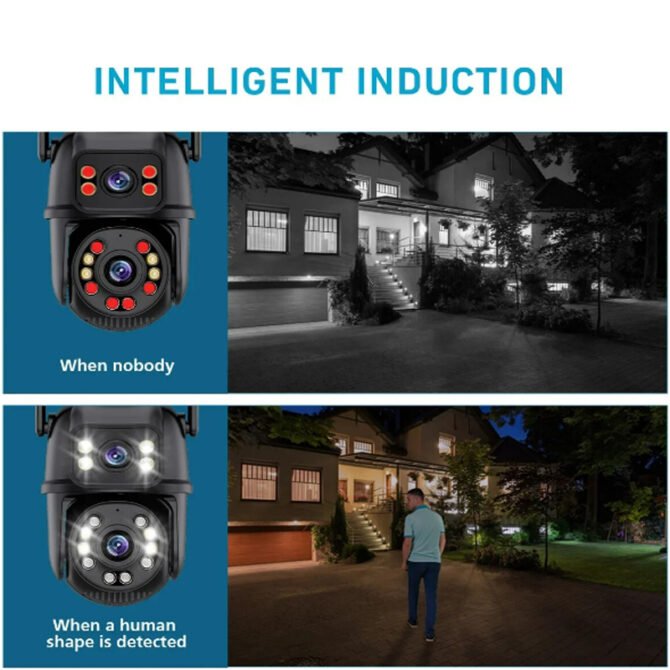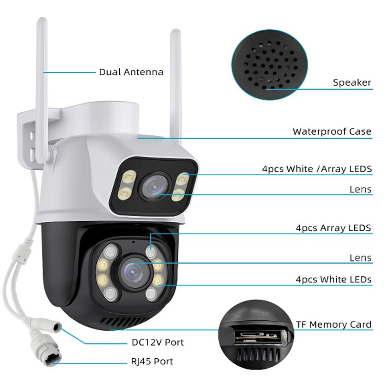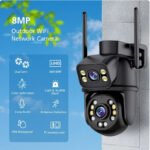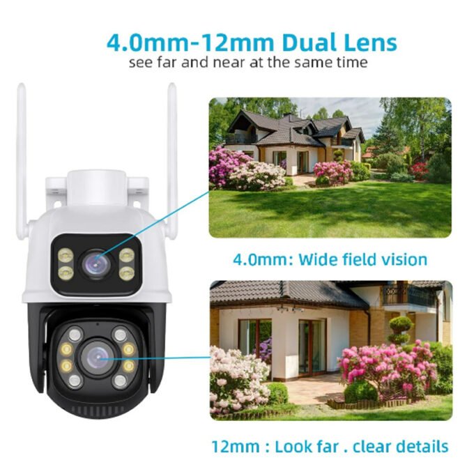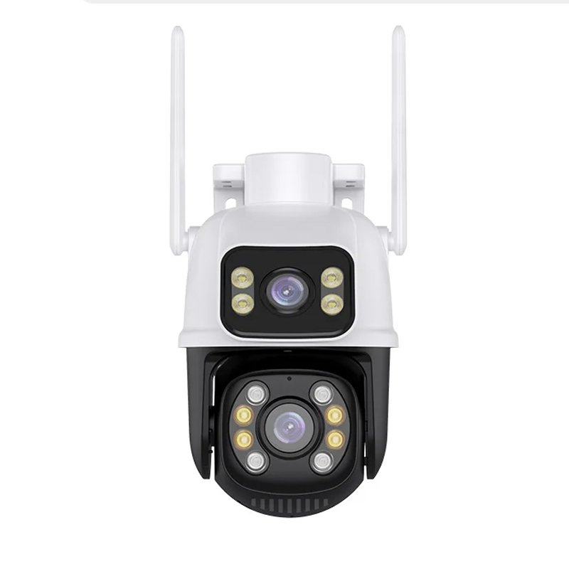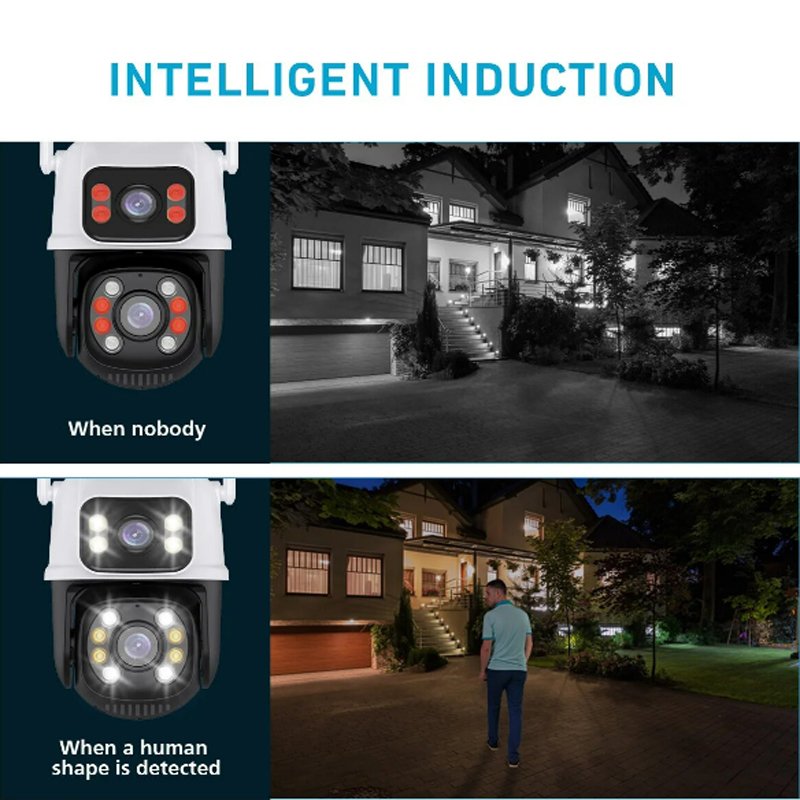 กล้องรักษาความปลอดภัยไร้สาย PTZ 8MP 4K ที่มีเลนส์คู่ หน้าจอคู่ ระบบตรวจจับมนุษย์ด้วยปัญญาประดิษฐ์ ติดตามอัตโนมัติ กล้องรักษาความปลอดภัยกลางแจ้งแบบไร้สาย แอป iCSee