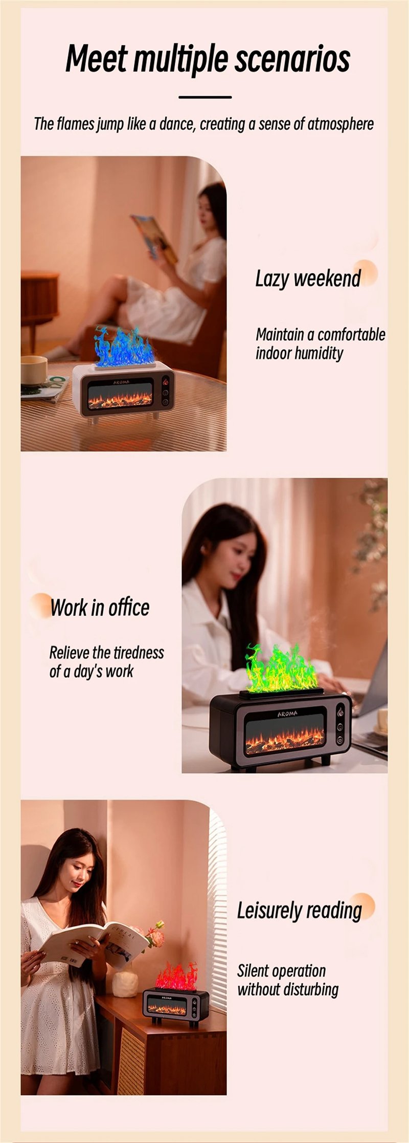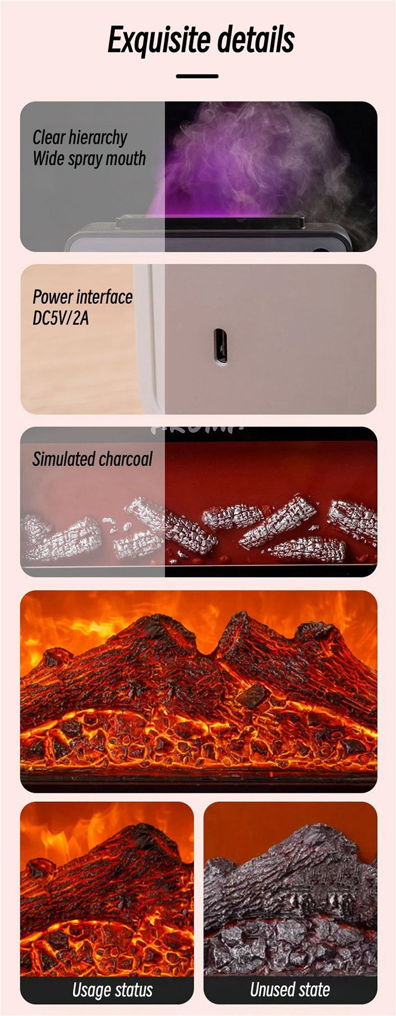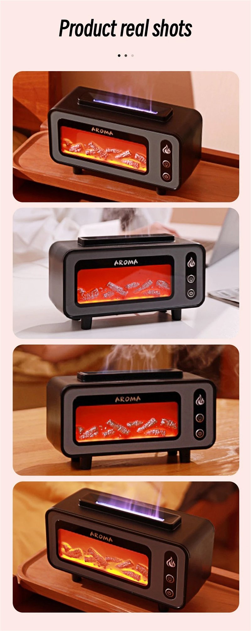 1. Simulate the charcoal flame fireplace effect and the colorful flame lighting effect;