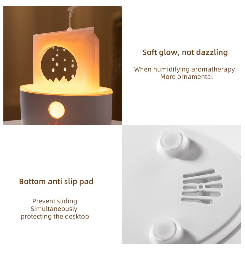 - Aromatherapy & Humidification: Combines the benefits of aromatherapy with humidifying mist to moisturize the air and promote a sense of well-being.”