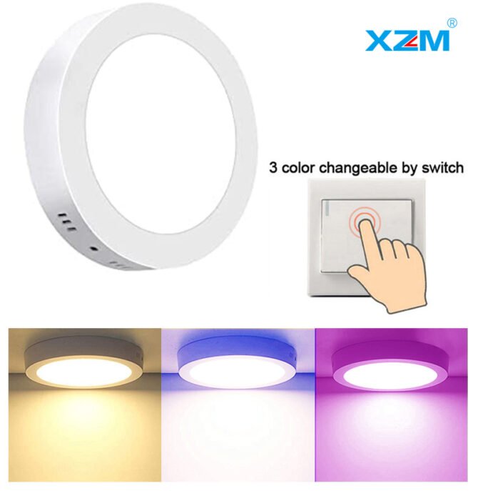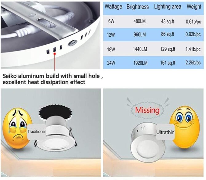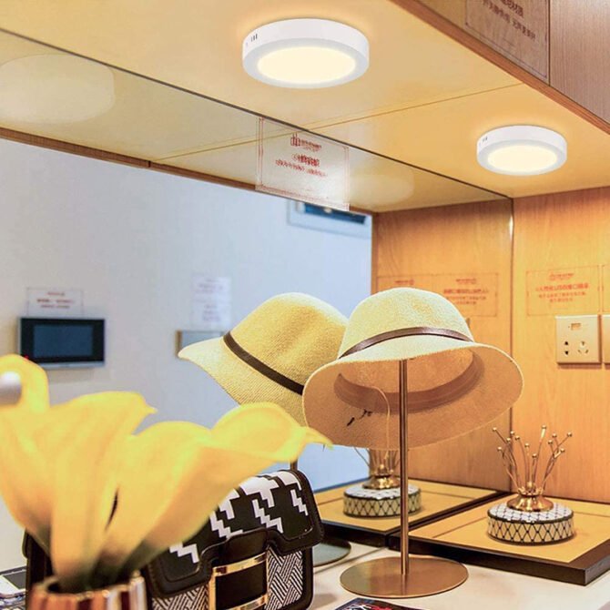 ไฟดาวน์ไลท์ LED ติดผิว 6W 12W 18W 24W – ไฟดาวน์ไลท์ติดผิวทรงกลมแบนสีฟ้าอ่อน สำหรับตู้เสื้อผ้า/ทางเดิน/บันได/ห้องครัว/ห้องใต้ดิน