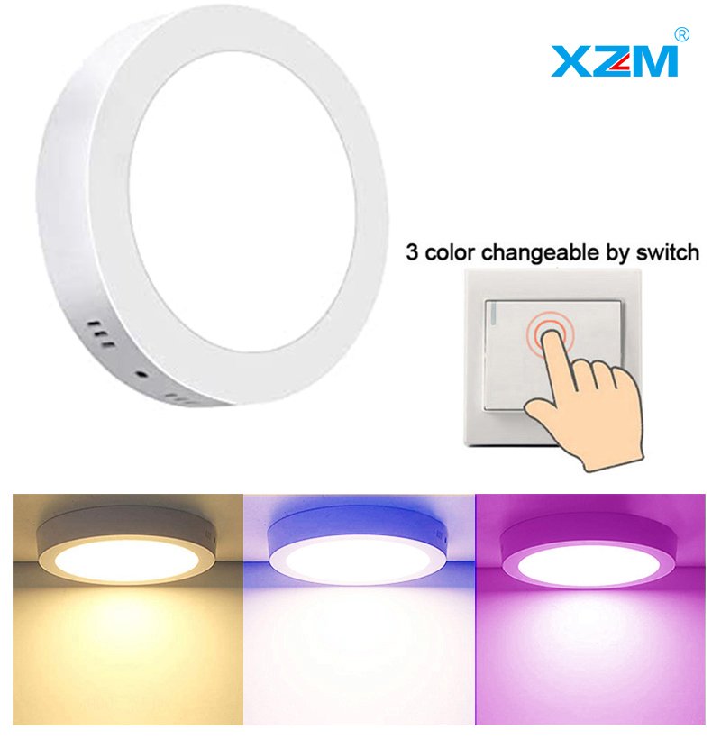 6W 12W 18W 24W LED Surface Mounted Downlight Fixture – Warm Light-Blue Light Flat Round Surface Mount Downlight for Closet/Hallway/Staircase/Kitchen/Basement Lighting