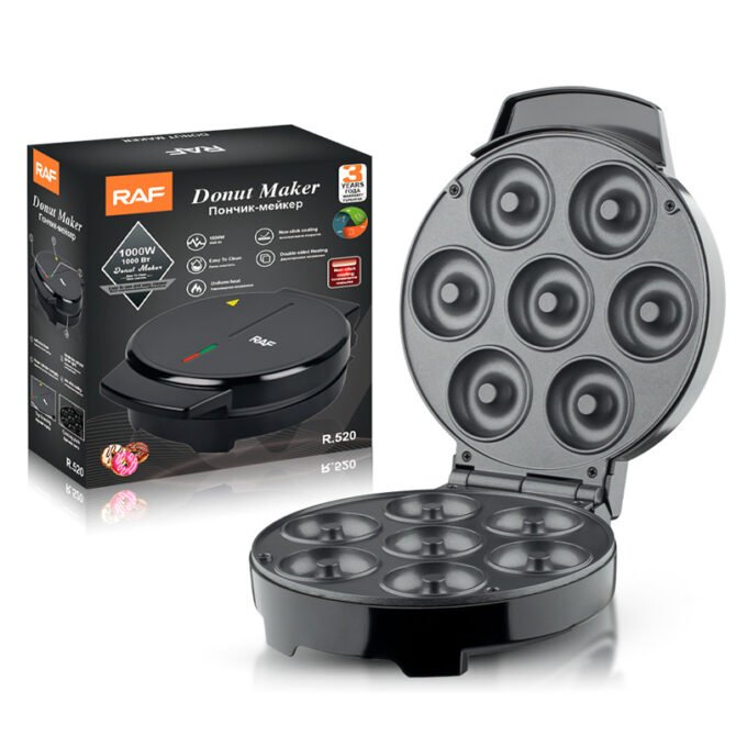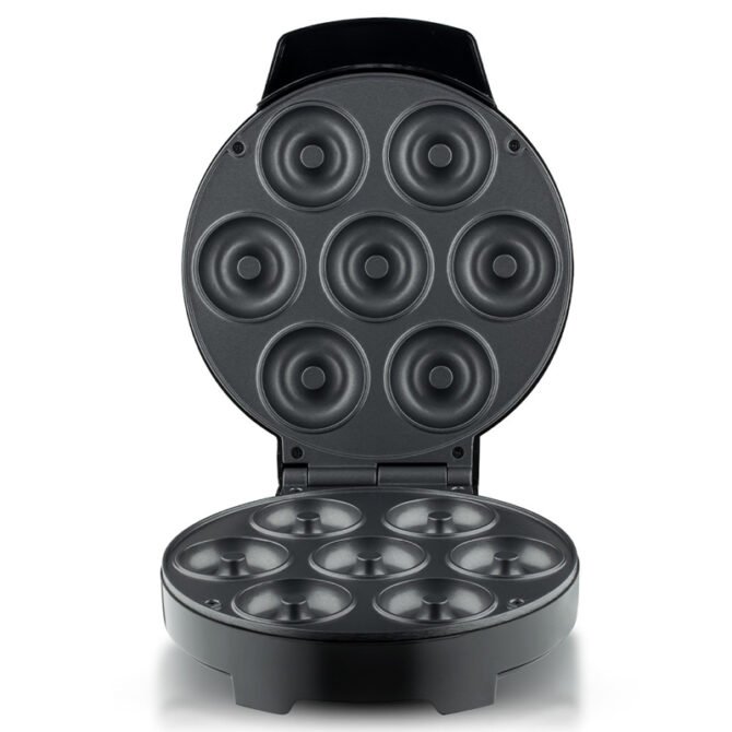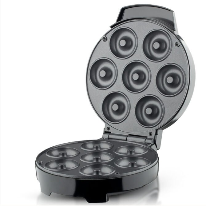 1 กล่อง = 8 ชิ้น เครื่องทำโดนัทมินิ 7 หลุม ทำความร้อนสองด้าน เครื่องทำโดนัทไฟฟ้า 1,200 วัตต์ เคลือบสารกันติด เครื่องทำขนมปังเค้ก
