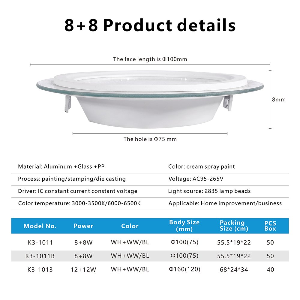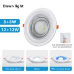 8W 12W Downlight Warm white + blue light + purple lightRa=85 630Lm Tricolor Downlight plastic embedded recessed led spotlight for home office led Downlight Ceiling Lights
