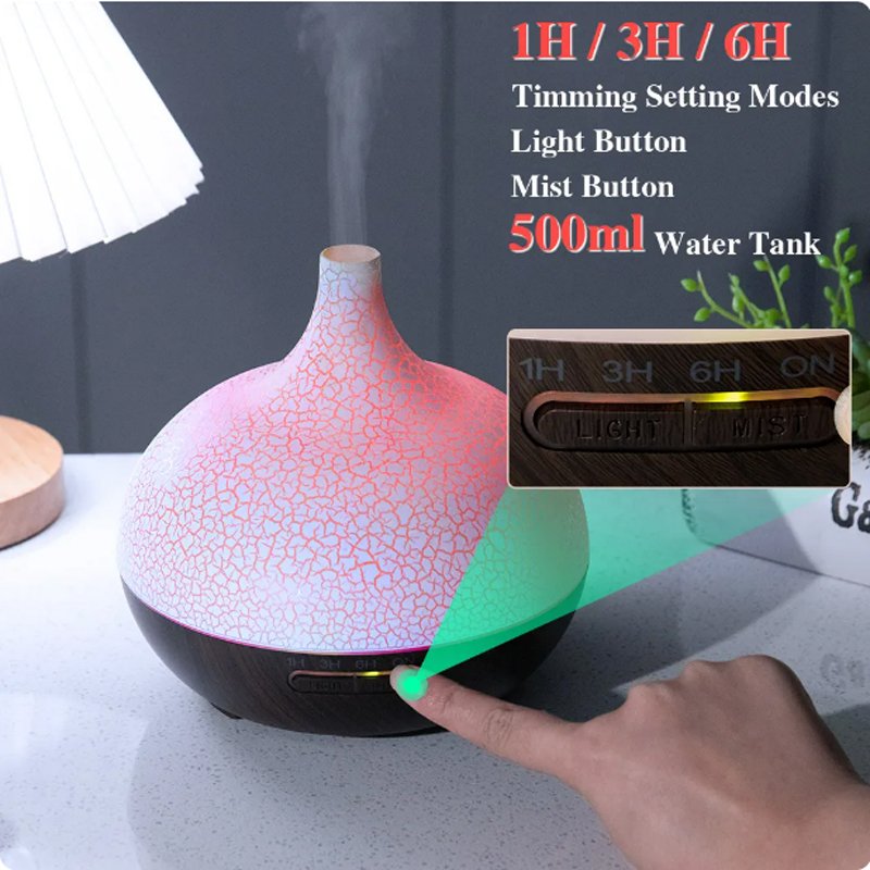 3.【3 TIME SETTING MODES】: Oil Diffuser 550ml built-in 4 time setting modes: 1 hour, 3 hours, 6 hours and continuous. And there are 2 options of mist for you to choose from, strong and standard mist. Just select what you want and enjoy the relax.