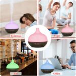 3.【3 TIME SETTING MODES】: Oil Diffuser 550ml built-in 4 time setting modes: 1 hour, 3 hours, 6 hours and continuous. And there are 2 options of mist for you to choose from, strong and standard mist. Just select what you want and enjoy the relax.
