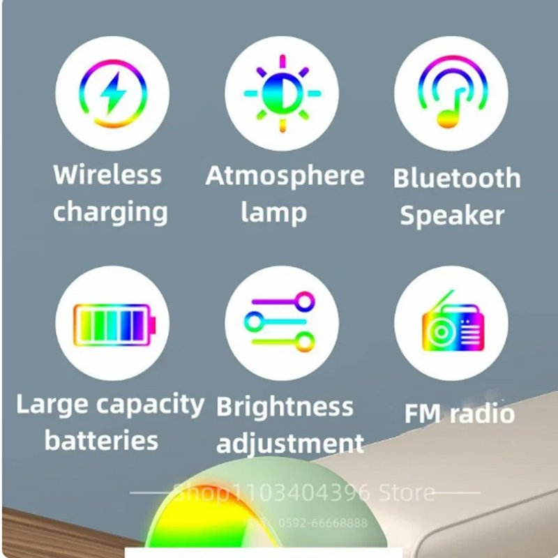 1 กล่อง = 24 ชิ้น ลำโพงเพลงบลูทูธ การตั้งค่าการแสดงผลนาฬิกา นาฬิกาปลุก การชาร์จโทรศัพท์มือถือแบบไร้สาย ไฟที่แวววาว ไฟกลางคืนขนาดเล็ก