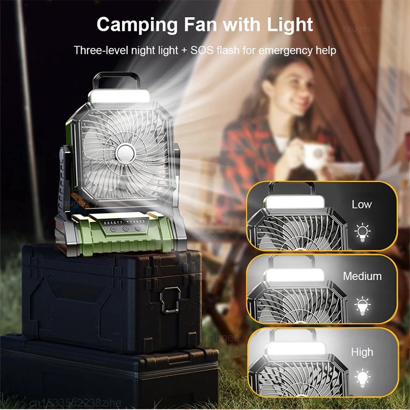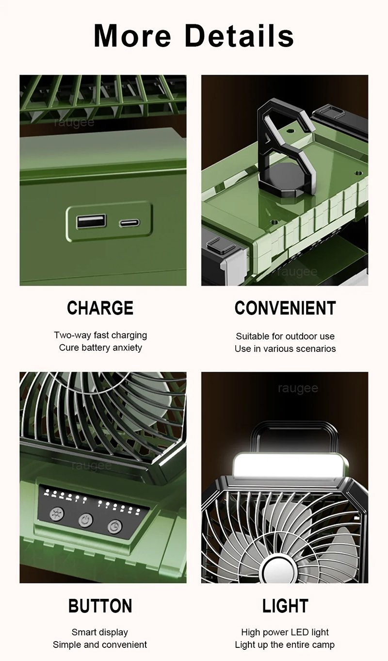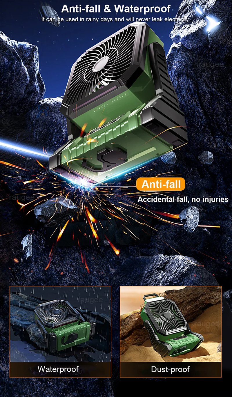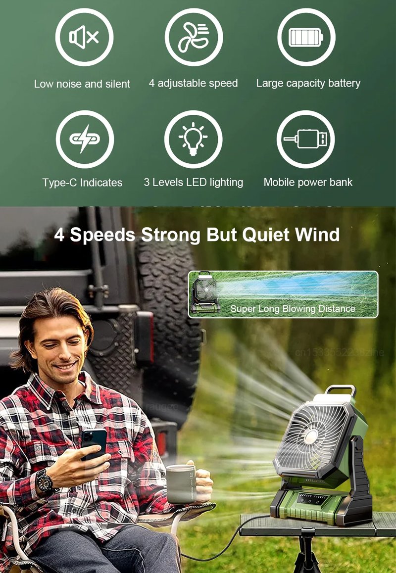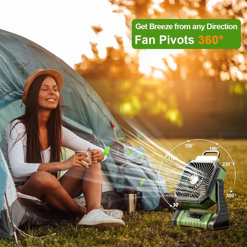 【Power Bank Function】Crafted with durability in mind. Our rechargeable fan is designed to provide you with long-lasting performance, thanks to its high-capacity 20000 mAh battery. this fan doubles as a mobile power supply, you can charge a variety of devices on the go.