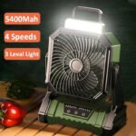 Camping Fan With Light 5400Mah Rechargeable Camping Circulator Fan Wireless Camping Tent Ceiling Fan Outdoor Air Blower