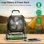 【Power Bank Function】Crafted with durability in mind. Our rechargeable fan is designed to provide you with long-lasting performance, thanks to its high-capacity 20000 mAh battery. this fan doubles as a mobile power supply, you can charge a variety of devices on the go.