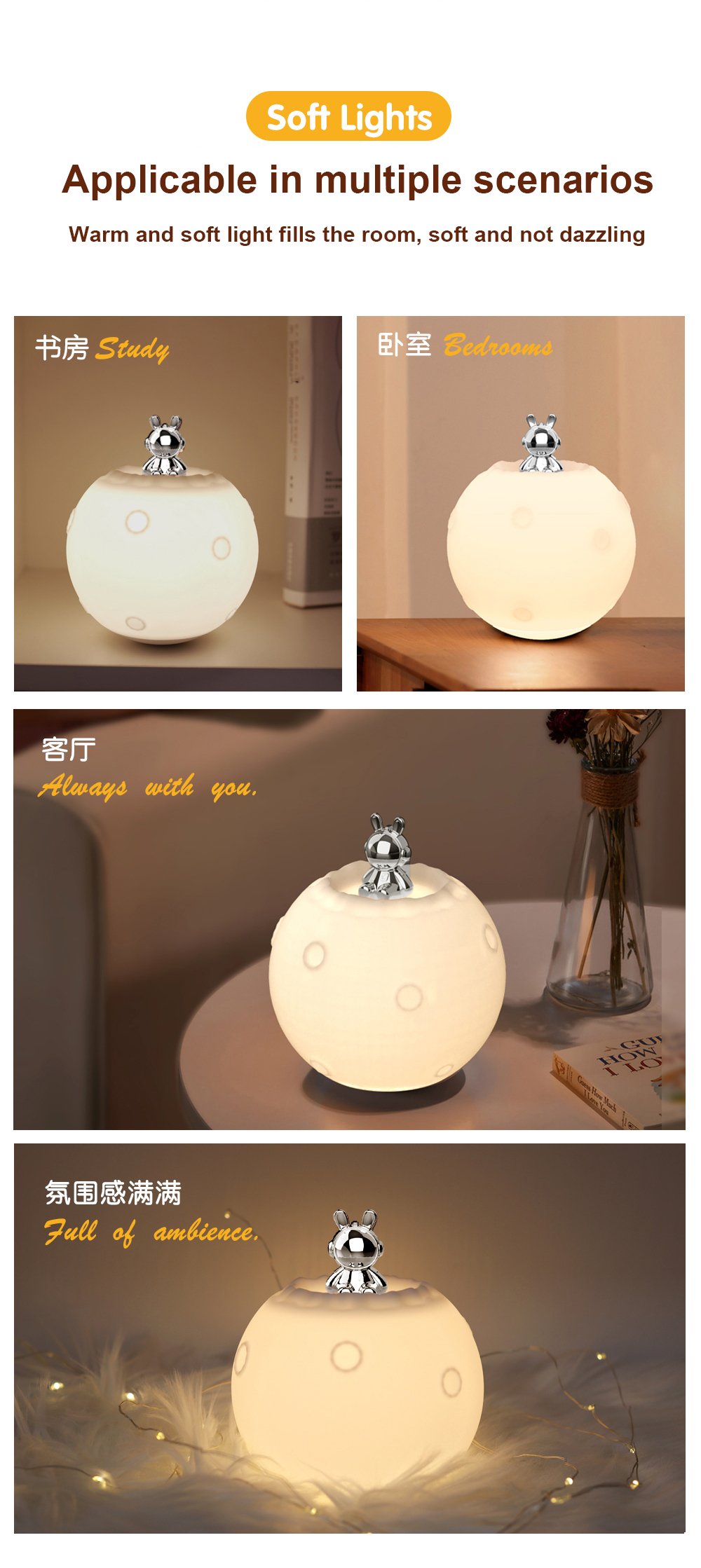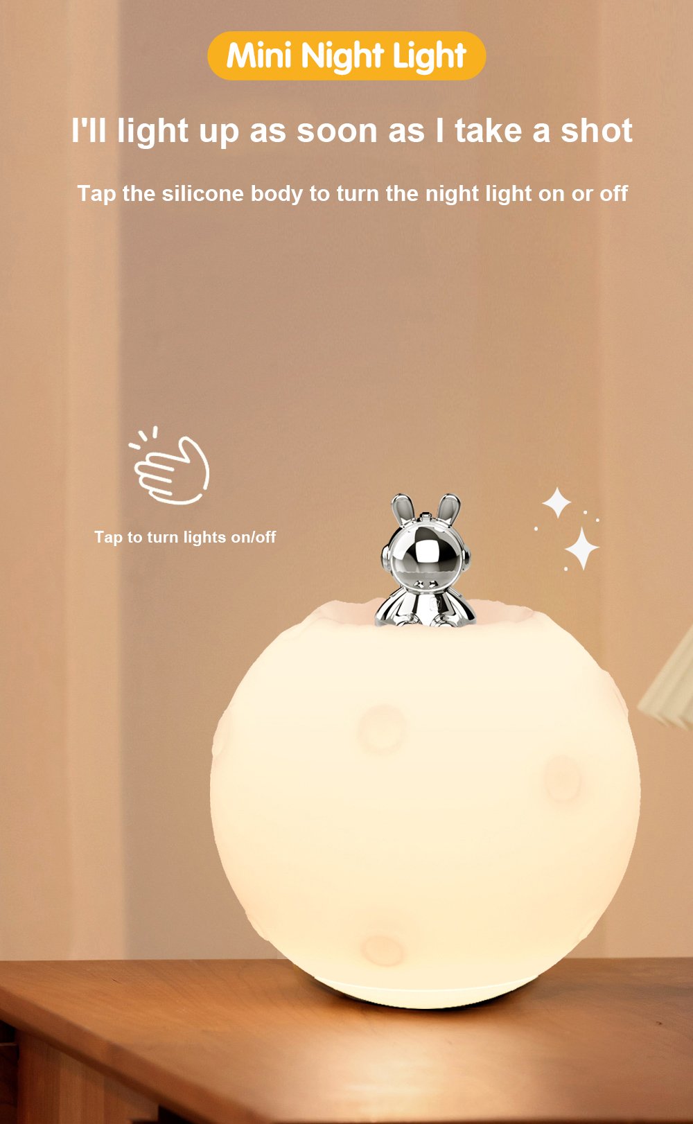1 กล่อง = 36 ชิ้น โคมไฟกลางคืนรูปกระต่ายน่ารักข้างเตียงนอน โคมไฟตั้งโต๊ะ LED ขนาดเล็ก ไม่ต้องใช้ปลั๊ก ไฟตกแต่งบรรยากาศสร้างสรรค์แบบตั้งพื้น