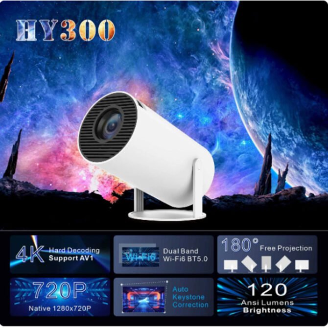 1 กล่อง = 20 ชิ้น มินิโปรเจ็กเตอร์ Hy300 4K Android 11 Dual Wifi6 200 ANSI Allwinner H713 BT5.0 1080P 1280*720P โปรเจ็กเตอร์โฮมเธียเตอร์กลางแจ้งพร้อมลำโพง Hi-Fi และโปรเจ็กเตอร์โทรศัพท์มือถือเชื่อมต่อด่วน